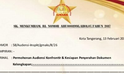 13 Februari 2026TANGERANG, siber.news | Perkumpulan Gerakan Moral Anti Kriminalitas (GMAKS) Tangerang Raya resmi melayangkan surat permohonan audiensi...