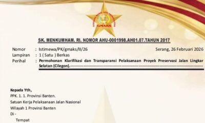 5 Maret 2026SERANG, siber.news – Perkumpulan Gerakan Moral Anti Kriminalitas (GMAKS) resmi melaporkan Unit Pelaksana Teknis (UPT) Pemeliharaan...