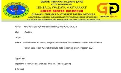 8 April 2026Tangerang, siber.news | Lembaga Swadaya Masyarakat Gerakan Reformasi Masyarakat (LSM GERAM) Banten Indonesia menyurati Dinas Pemuda...