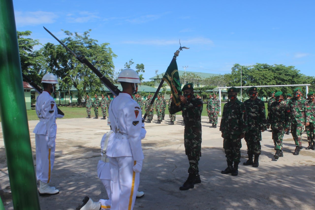 Sambas, Siber | Tradisi pelepasan pindah satuan kepada 43 prajurit terbaik Gardatama Yudha, merupakan salah satu upaya menanamkan rasa bangga terhadap satuan yang dicintai. Hal itu dikatakan Danyonif 645/Gty Letkol Inf Khusnun Dwi Putranto, S.E. saat memimpin acara Korps Raport Pindah Satuan, di Halaman Mako Yonif 645/Gty, Sambas, Jumat (18/06/2021).
