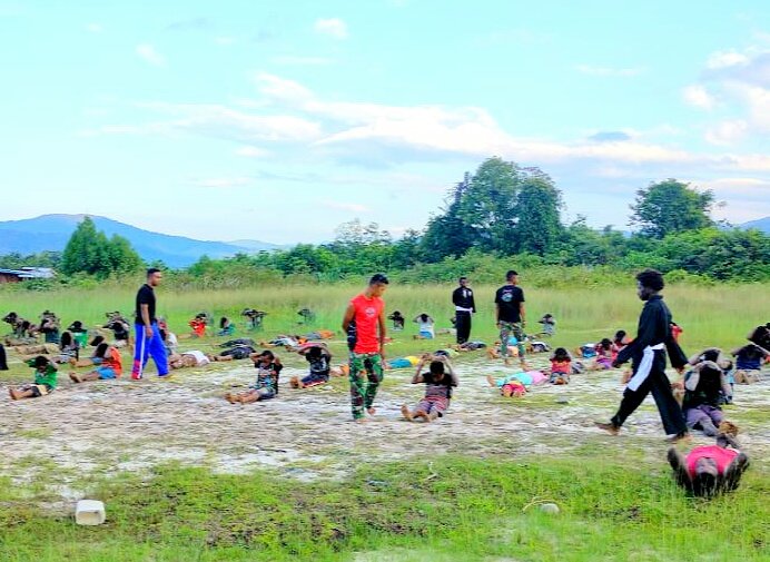 Latihan PSHT di Makotis Elelim turut dibantu dari kader PSHT Kabupaten Yalimo bapak Roni dan Bapak Roy, sekaligus mengucapkan terima kasih kepada Satgas 142/KJ kita bisa bersama membina remaja di Distrik Elelim ini.