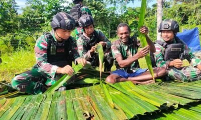 Sambil Menyelam Minum Air, Satgas Yonif Raider 142/KJ Lakukan Anjangsana Dapat Ilmu Cara Membuat Atap Rumbia