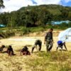 Babinsa Koramil 1710-02/Timika Membantu Petani Merawat Lahan Jagung Di Wilayah Binaan
