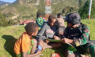 8 November 2022LANNY JAYA, siber.news | Satgas Yonif Mekanis 203/AK Pos Pirime menunjukan keakraban dengan anak-anak di Pegunungan...