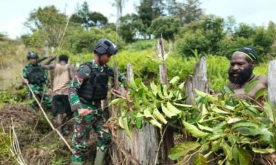 Jalin Kebersamaan, Satgas Yonif Raider 321/GT Kostrad Membuat Pagar Bersama Masyrakat Distrik Napua