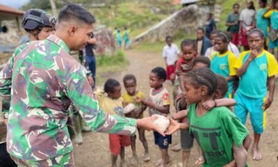 Jalin Tali Kasih, Satgas Yonif Raider 321 Kostrad Berbagi Makanan Kepada Warga di Pedalaman Papua