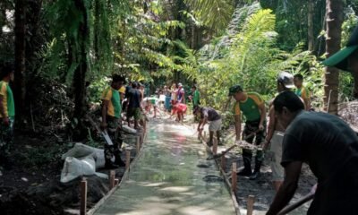 Sambut HUT Ke-77 TNI, Satgas Yonarmed 1 Kostrad Bersama Warga Desa Allang Asaude Bangun Jalan Setapak Sejauh 120 Meter