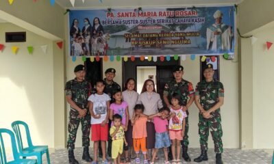 Peduli Sesama, Satgas Yonarmed 1 Kostrad Kunjungi dan Beri Bantuan Kepada Panti Asuhan Santa Maria Ratu Rosari