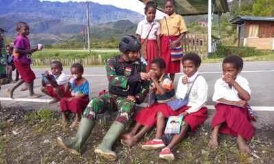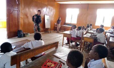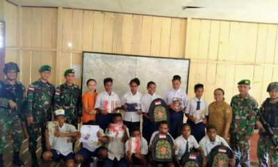 Memotivasi Pelajar Di Perbatasan Papua, Satgas Yonif 126/KC Mengajar Dan Bagikan Perlengkapan Sekolah