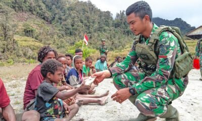 Peduli Dengan Sesama, Satgas Yonif Raider 321 Kostrad Berbagi Makanan Pada Masyarakat di Pedalaman Papua