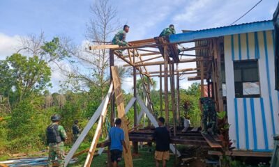 Semangat Dalam Mengatasi Kesulitan Rakyat, Personel Satgas Yonif 126/KC Bantu Renovasi Gereja Di Perbatasan Papua