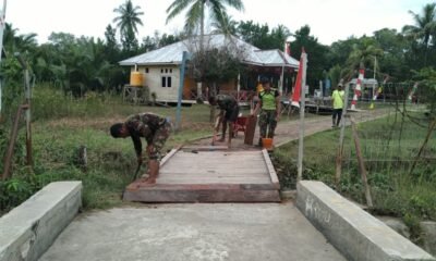 Peduli Dengan Kesulitan Warga Sekitar, Personel Satgas TMMD Reg Ke-114 Bantu Warga Perbaiki Jembatan Yang Rusak