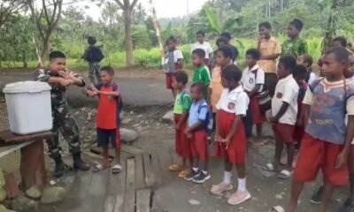 Hal Kecil Yang Berarti Bagi Generasi Penerus Di Perbatasan Papua, Satgas Yonif 126/KC Edukasikan Cara Cuci Tangan