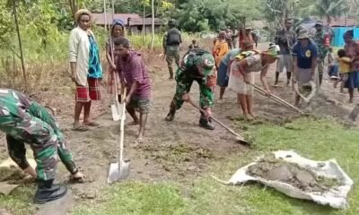 Wujud Kebersamaan Dengan Masyarakat Di Perbatasan Papua, Satgas Yonif 126/KC Bersama Masyarakat Laksanakan Pembersihan Lingkungan