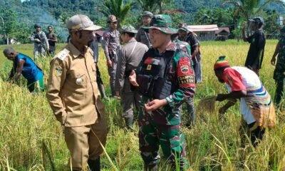 Dukung Ketahanan Pangan, Satgas Pamtas Yonif 126/KC Bantu Warga Panen Padi