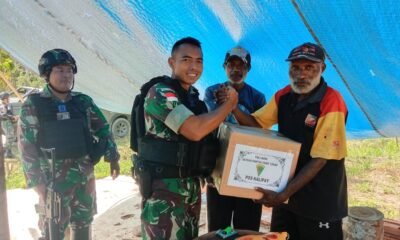 Satgas Pamtas Yonif 126/KC Datangi Kampung Pund Distrik Waris Bagikan Sembako Dan Bingkisan