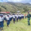 5 April 2023Lanny Jaya, siber.news — Personel Pos Malagay Satgas Yonif Mekanis 203/AK melatih baris berbaris murid-murid SMPN...