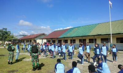 Satgas YR 142/KJ Tanamkan Kedisiplinan Kepada Siswa SMAN 1 Elelim