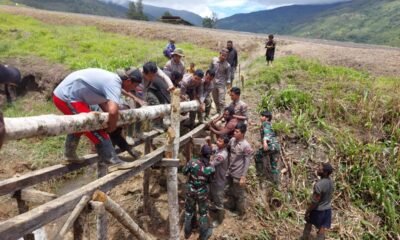 21 Februari 2023Pegunungan Bintan, Siber | Satgas Yonif 143/TWEJ mengajak warga untuk membangun jembatan penghubung antara Kampung Mangoldoki...