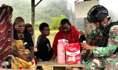 Cegah Stunting, Satgas Yonif Raider 321/GT Bagikan Susu Tingkatkan Kualitas Gizi Generasi Muda Papua Pegunungan