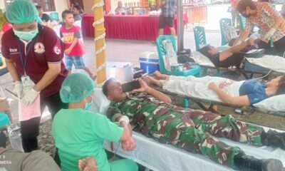 Danramil 1710-02/Timika Turut Berpartisipasi Pada Kegiatan Bhakti Sosial Donor Darah Dalam Rangka Perayaaan Injil Masuk Papua