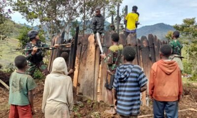 Lestarikan Budaya Gotong Royong, Satgas Yonif R 321/GT Bangun Honai Bersama Masyarakat Distrik Mbua Papua