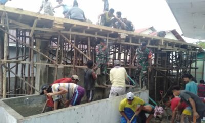 Peduli Sarana Ibadah, Satgas Yonarmed 1 Kostrad Bantu Warga Gotong Royong Bangun Sarana Masjid