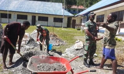 Babinsa Koramil Beoga Laksanakan Karya Bhakti Bersama Masyarakat Membantu Pembangunan Gedung SMPN 1 Beoga