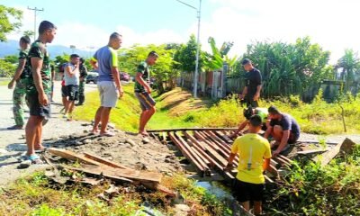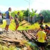 Jembatan Rusak, Satgas Yonif Raider 142/KJ Tebar Aksi Dengan Perbaiki Jembatan
