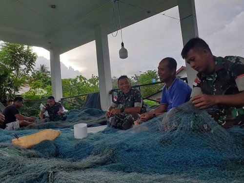 Bangun Komunikasi Sosial, Satgas Yonarmed 1 Kostrad Bantu Nelayan Desa Laha