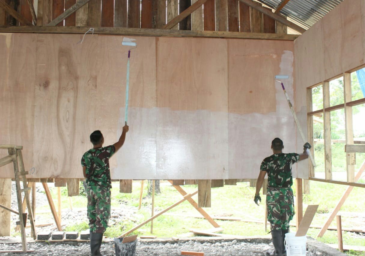 Sementara itu, Ibu Syanet selaku kepala sekolah mengucapkan terima kasih banyak atas bantuan tenaga dari Pos Satgas TNI. “Bantuan dari Satgas mempercepat pembangunan ruangan sekolah yang nantinya akan digunakan oleh para peserta didik,” pungkasnya.
