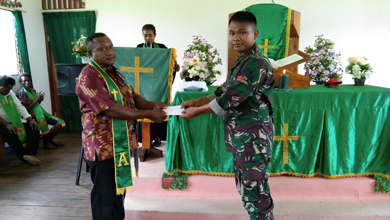 “Pembangunan dilaksanakan di Gereja GKI Domine Edward Katutung dan diharapkan kelanjutan pembangunan rumah bapak pendeta Mimin Warisal dapat dilakukan sampai dengan rumah beliau berdiri,” tambah Lettu Inf Jefri.