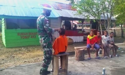Menyambut Hari Natal, Anak Perbatasan RI-PNG Antri di Pos Satgas Yonif MR 413 Kostrad Untuk Dicukur