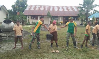 Satgas Yonif MR 413 Kostrad Bangun Lapangan Upacara Untuk SMP 7 Yetti