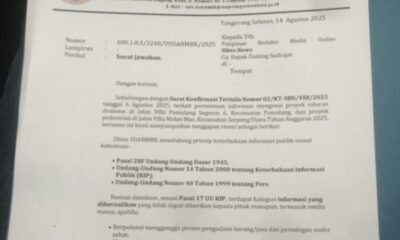 25 Agustus 2025Tangsel siber.news | Surat Konfirmasi Tertulis (SKT) Nomor 02/KT-SBN/VIII/2025 yang dilayangkan oleh Media siber.news pada 6...