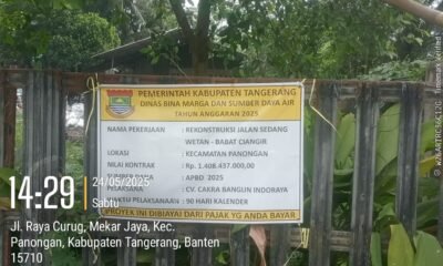 3 Juni 2025siber.news | Pelaksanaan poyek Pembangunan Jalan Alternatif Suradita – Kranggan Kecamatan Cisauk, Kabupaten Tangerang diduga kuat...