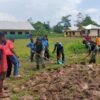 Perkuat Ketahanan Pangan, Satgas Pamtas Yonif Raider 142/KJ Bersama Siswa SMP Gotong Royong Buka Lahan Tidur