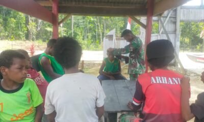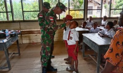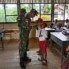 Satgas Yonif 126/KC Melaksanakan Penyuluhan Kesehatan dan Memberikan Vitamin serta Obat Cacing Anak-Anak Usia Sekolah di Wilayah Perbatasan RI-PNG
