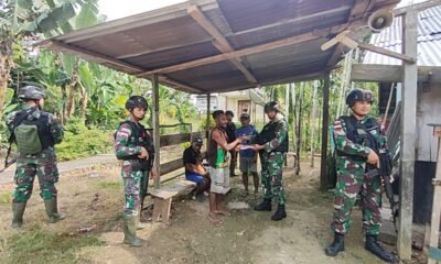 Ringankan Beban Orang Tua, Yonif 126/KC Bagikan Baju dan Buku Tulis Kepada Anak-Anak Perbatasan