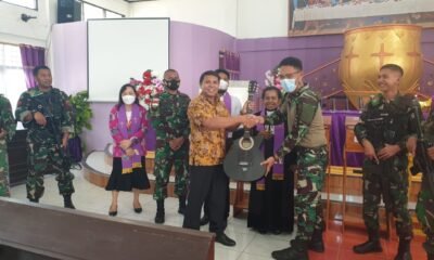 Satgas Kodim Yalimo Yonif RK 751/VJS Berikan Bantuan Alat Musik
