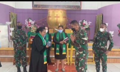 Laksanakan Ibadah Bersama, Satgas Kodim Yalimo Yonif RK 751/VJS Beri Bantuan Alkitab