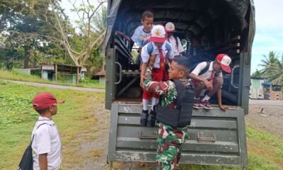 Satgas Yonif 126/KC Bantu Antar Jemput Anak Sekolah di Perbatasan