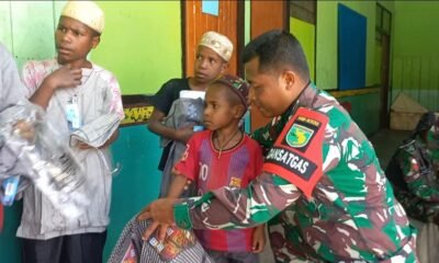 Berbagi Kasih Kepada Para Santri, Satgas Kodim Yonif RK 751/VJS Bagikan Baju Koko dan Mukena