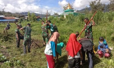 Laksanakan Karya Bakti Bersama Para Santri, Satgas Kodim Yalimo Yonif RK 751/VJS Sulap Lahan Kosong Menjadi Kebun Sayuran