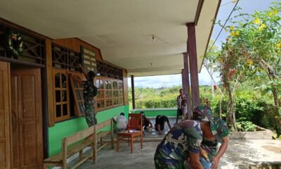 Jelang Acara Pentabisan Imamat, Satgas Yonif 126/KC Bantu Warga Bersihkan Gereja