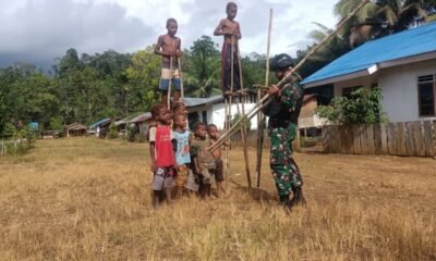Satgas Pamtas Yonif 126/KC Perkenalkan Permainan Tradisional Kepada Anak-Anak Perbatasan