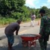 Antisipasi Kecelakaan, Satgas Yonif 642 Perbaiki Jalan Berlubang Bersama Warga