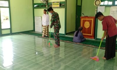 Jaga Kenyamanan Beribadah, Satgas Pamtas Yonif 642 Bersama Warga Bersihkan Masjid Al-Kautsar