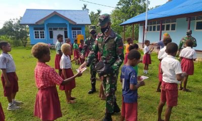 Satgas Pamtas RI-PNG Yonif 125/Simbisa Bagikan Masker Kepada Siswa-Siswi SD YPK Toray
