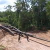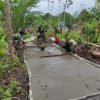 Personel Satgas Pamtas Yonif 642 Bersama Warga Desa Sungai Bening Perbaiki Jalan Setapak